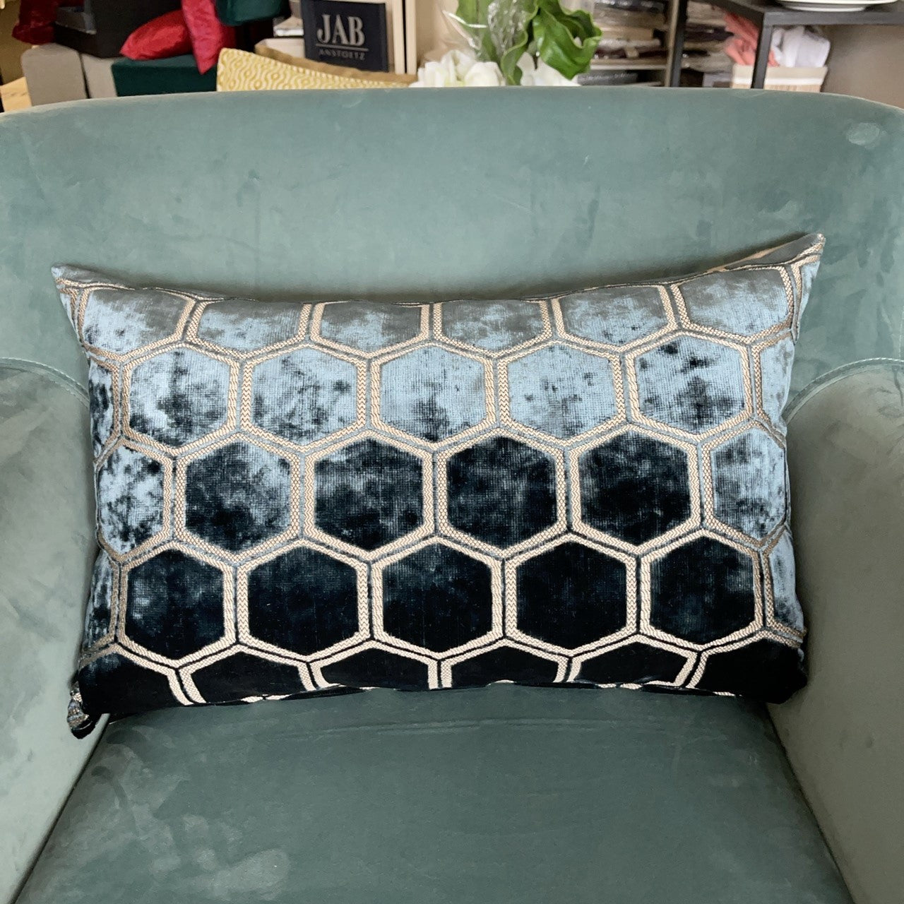 CUSCINO MOTIVO ESAGONALE BLU NOTTE