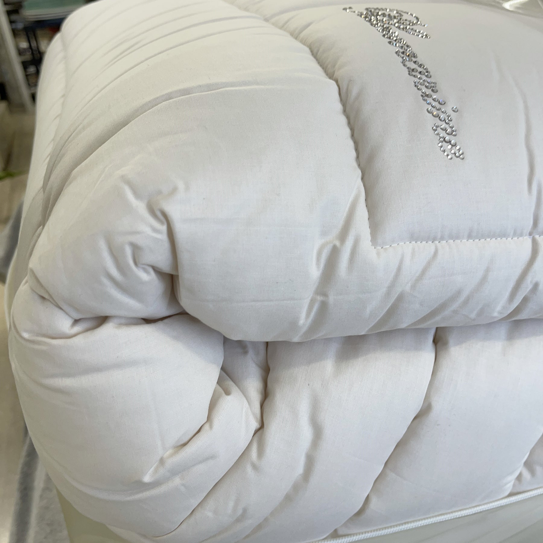 Qua sotto potrai vedere come appare il piumone, potrai ammirare il suo stile unico e raffinato per arredare la tua camera da letto!